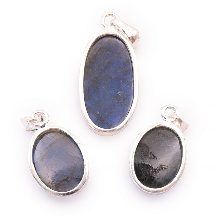 Categoría(s) : Colgantes - Colgantes Plata 925 Pierre(s) : Labradorita Peso del lote : 20,28g. Número de colgantes en el paquete: 3. Tamaño del colgante más pequeño (sin correa) : 20mm. Tamaño del colgante más grande (sin correa) : 32mm. Color(es) : Negro / Reflejos / Azul. Calidad: AAA = La mejor calidad posible