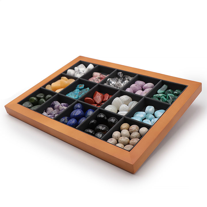 Este expositor puede contener colgantes, pulseras, piedras rodadas, etc...