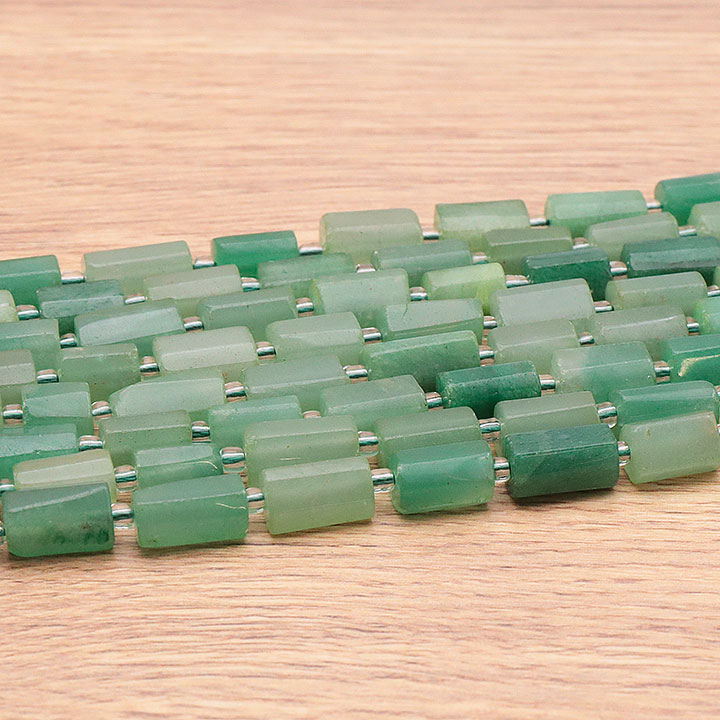 Hilo de perlas en forma de tubo 08 x 12mm aventurina verde AA