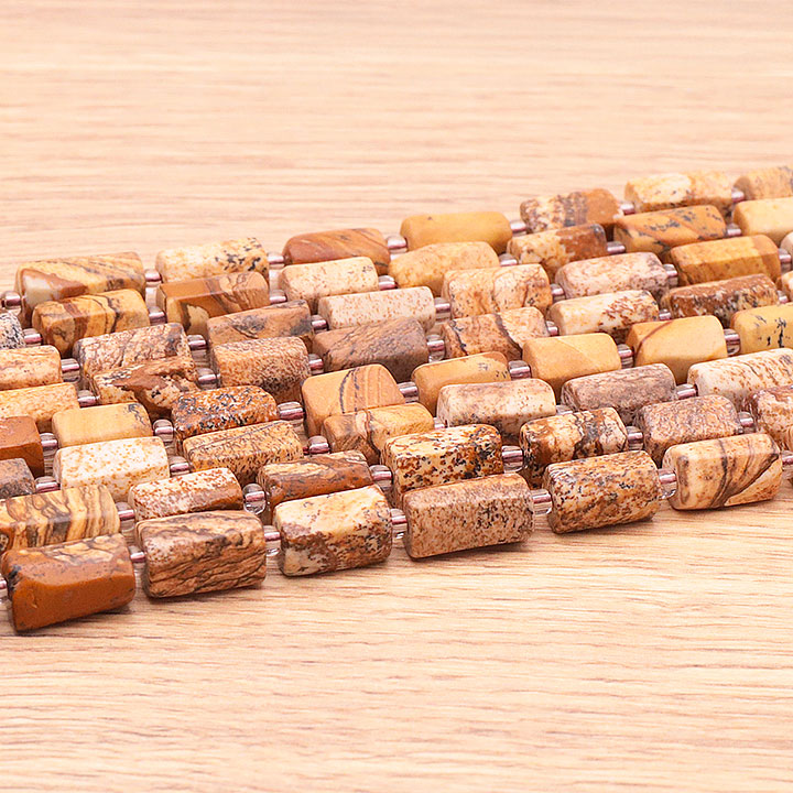 Hilo de perlas tubos 08 x 12mm jaspe paisaje A