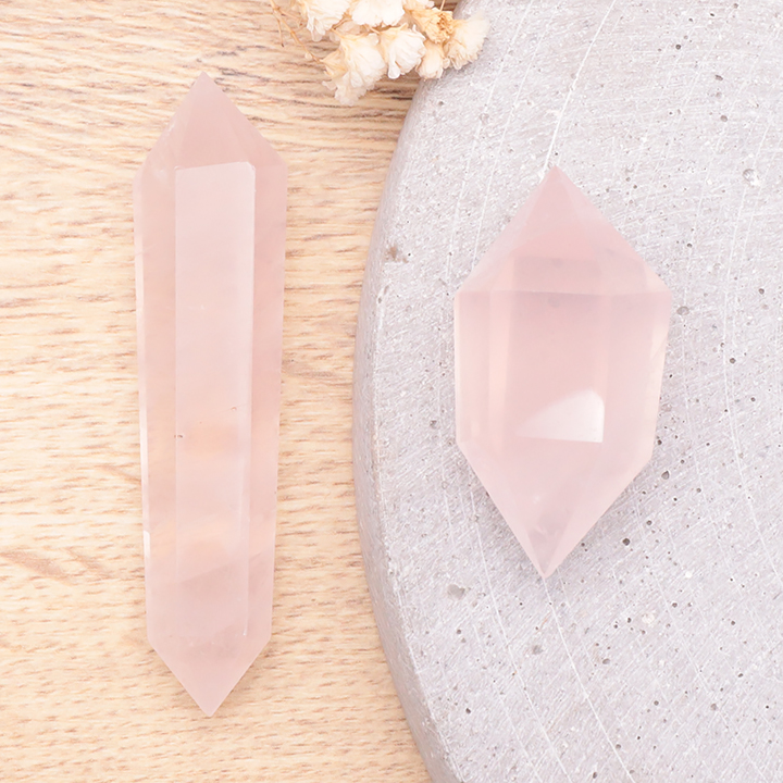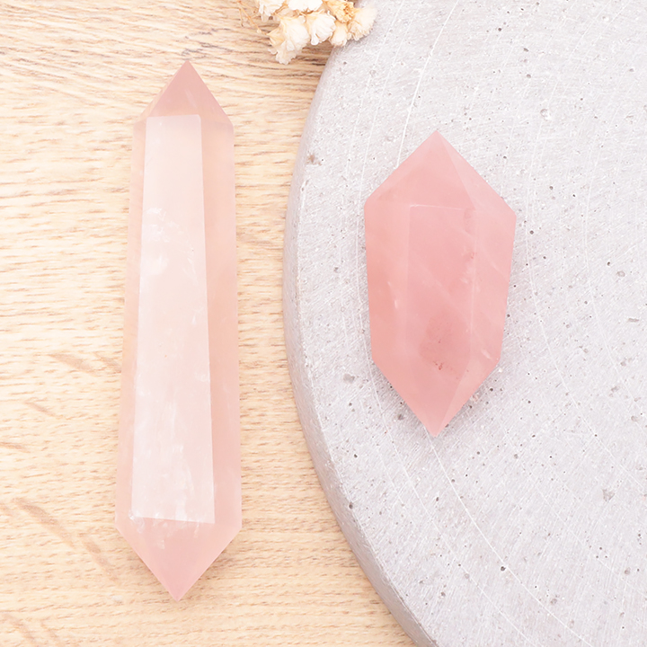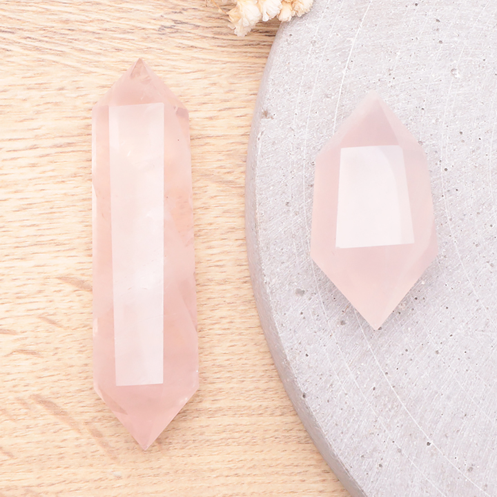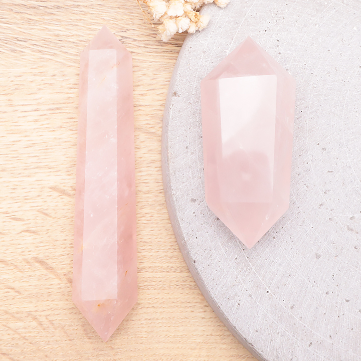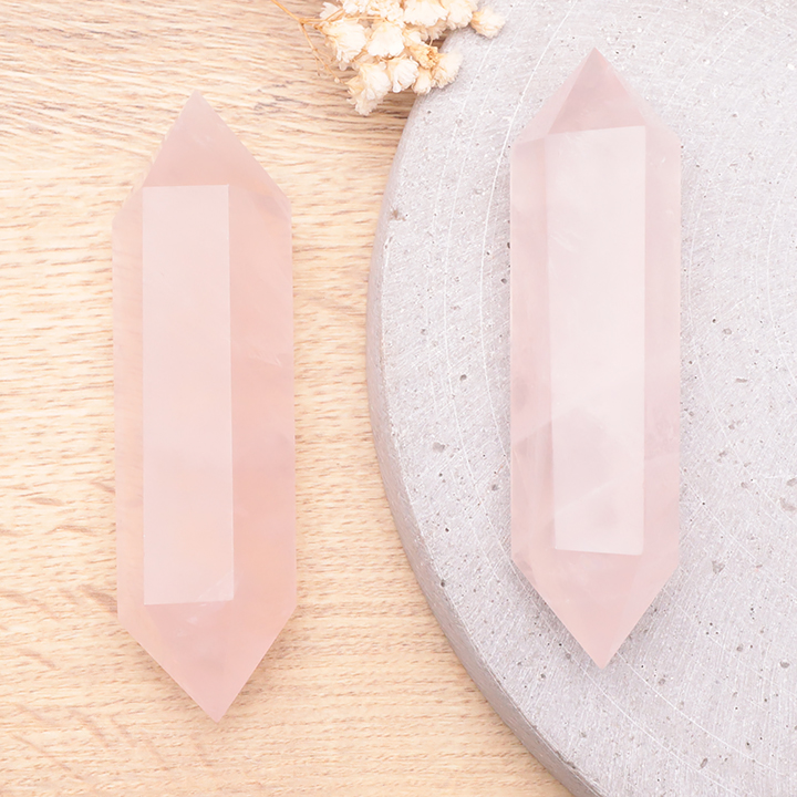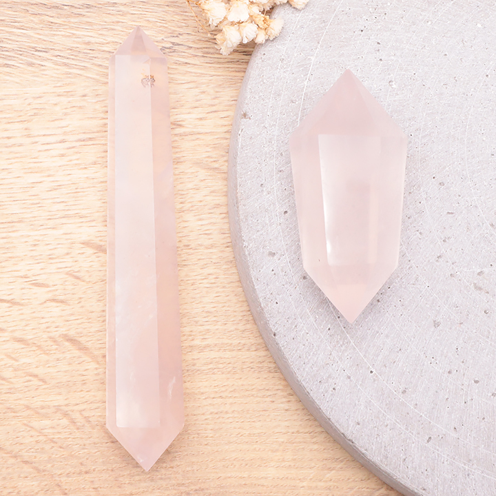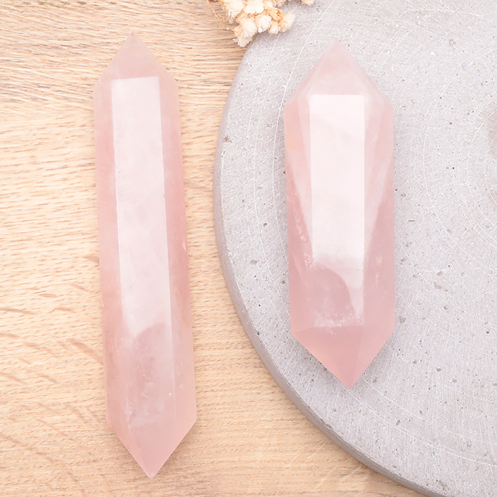 Punta doble terminada 30mm cuarzo rosa Brasil A (set 10 piezas)