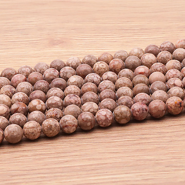 Hilo de perlas de piedras rodadas 04 x 10mm coral fósil A
