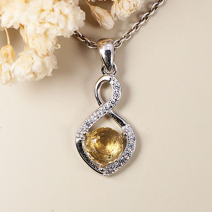 Colgante de plata 925 turmalina gema facetada amarilla (tsilasite) AA+ N°3094 (1 pieza) 2.98g