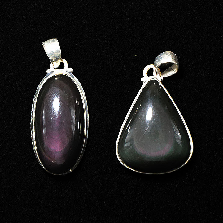 Colgante de plata 925 obsidiana ojo celestial AA N°4542 (set 2 piezas) 20.57g