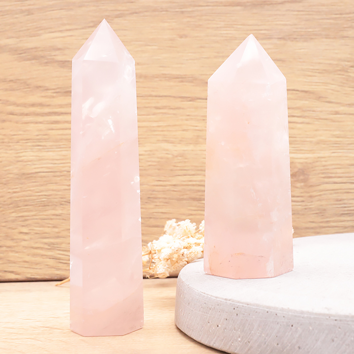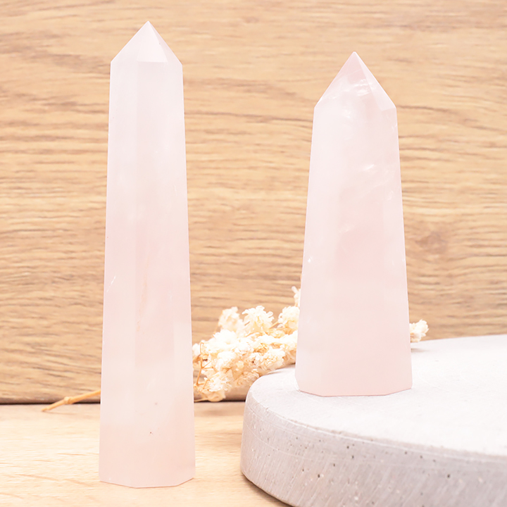 Pirámide 40mm cuarzo rosa Brasil A (set 2 piezas)