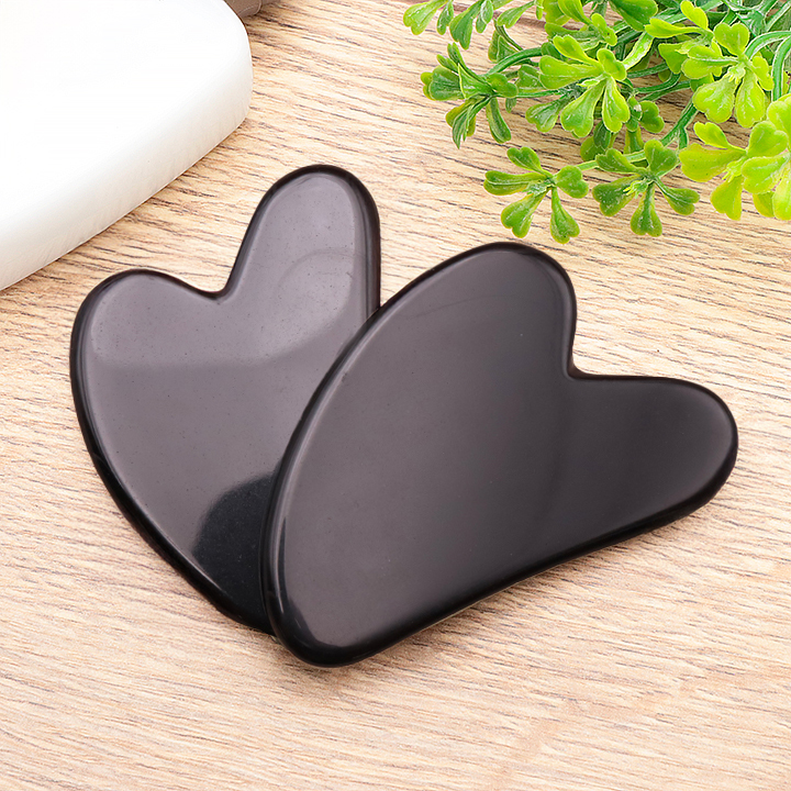 Gua sha corazón 80mm obsidiana negra A (set 3 piezas)