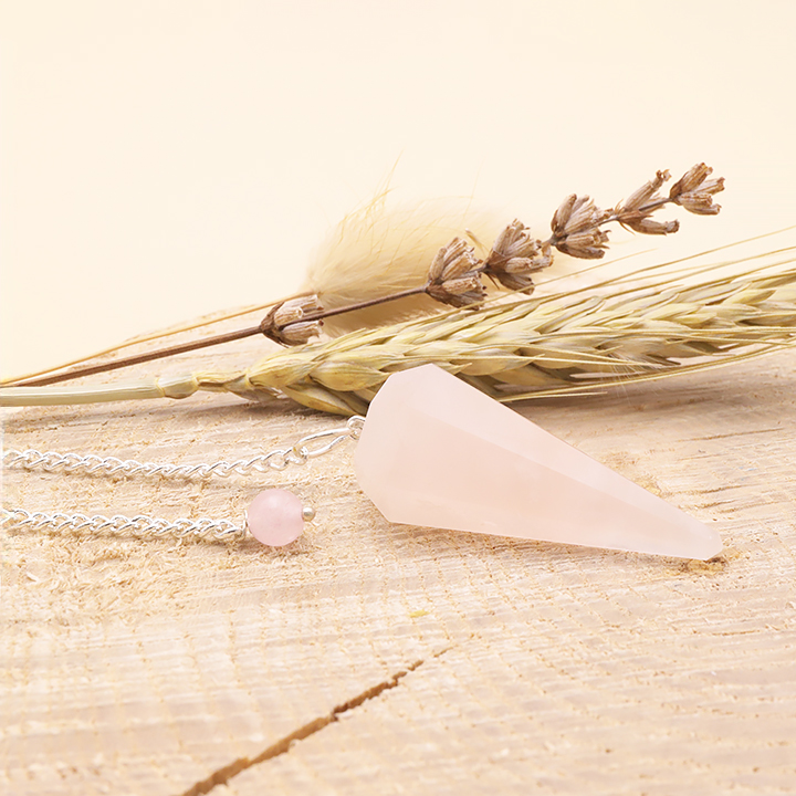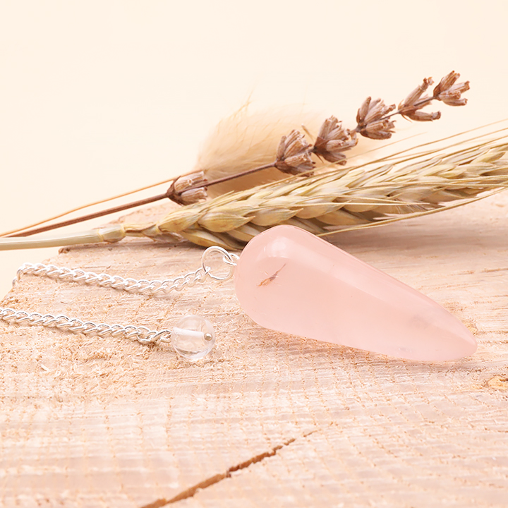 Péndulo de cuarzo rosa hexagonal Brasil A (set de 5 piezas)