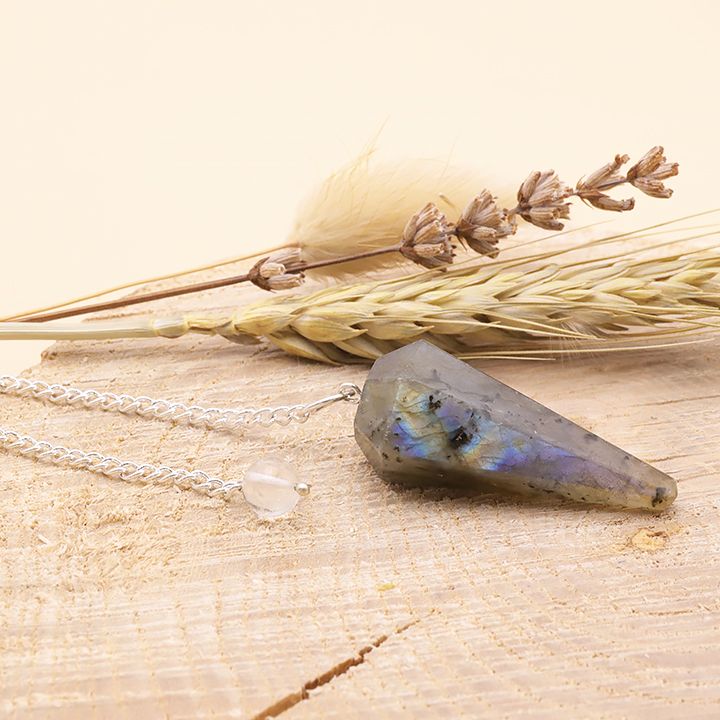 Péndulo hexagonal de labradorita AB (set de 3 piezas)