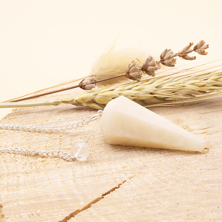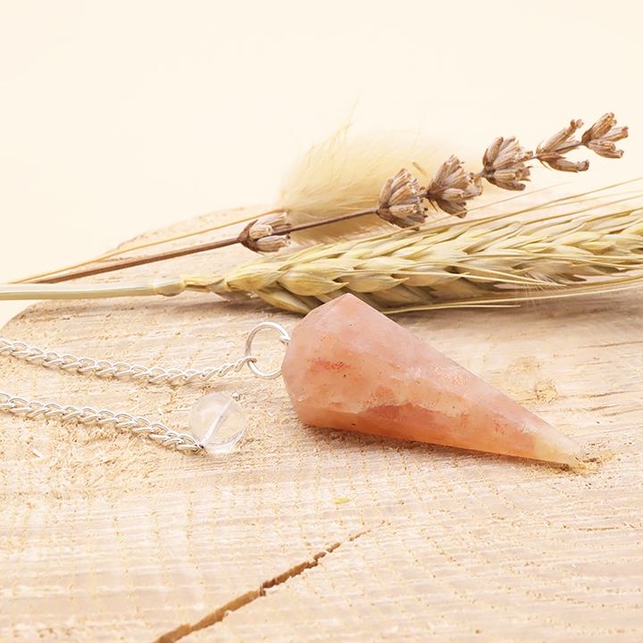 Péndulo hexagonal piedra de luna rosa A (set 3 piezas)