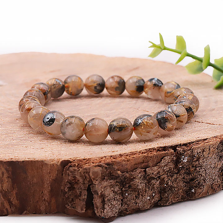 Pulsera bola 08mm cristal de roca rutilo hematita AA (08,5-09,5mm)