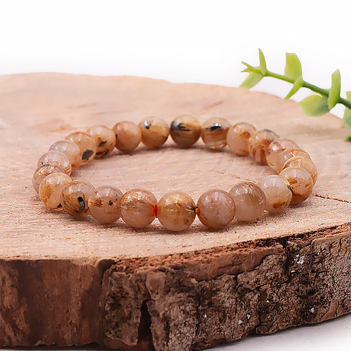 Pulsera de bolas 08mm cuarzo rutilado cristal hematita AA+ (08,5-09,5mm)