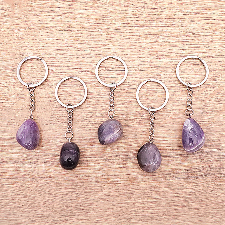 Llavero de piedra rodada de amatista Brasil A (set de 5 piezas)