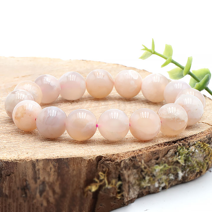 Pulsera de bolas de ágata flor de cerezo de 14mm A (13-14mm)