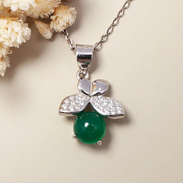 Colgante de plata 925 rodiada modelo 01 crisoprasa AA+ (1 pieza) set N°1A0425