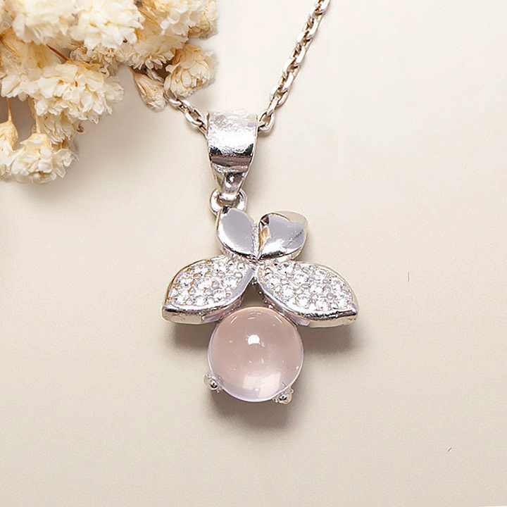 Colgante de plata 925 rodiada modelo 01 cuarzo rosa Madagascar AA+ (1 pieza) set N°1A0425