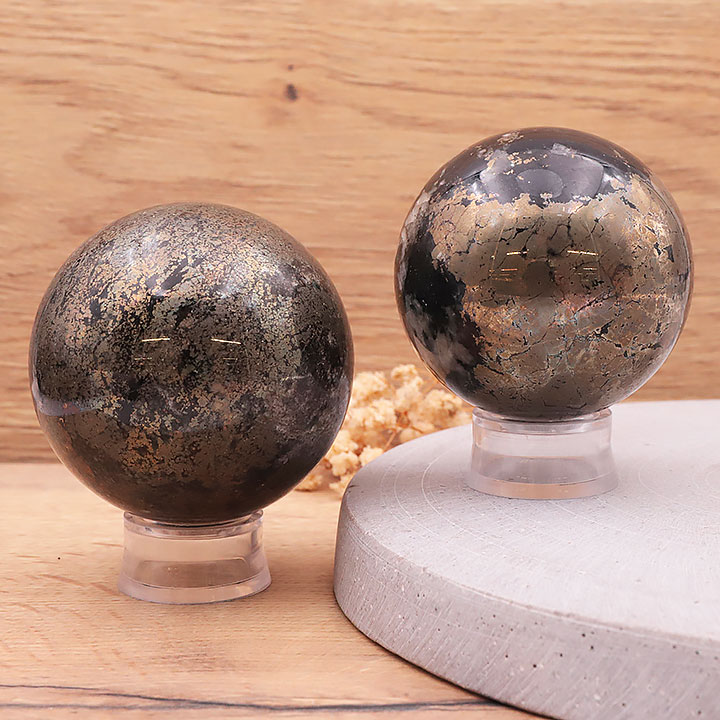 Esfera de pirita sobre magnetita AA 50 a 60mm (1 pieza)