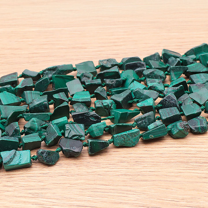 Hilo de perlas de piedras en bruto 06 x 14mm malaquita A
