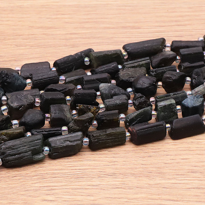 Hilo de perlas piedras brutas 06 x 15mm turmalina verde cristalizada A