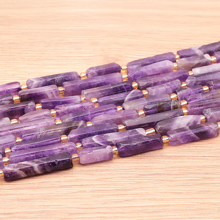 Hilo de perlas de tubos horizontales 06 x 27mm amatista listada Brasil AA
