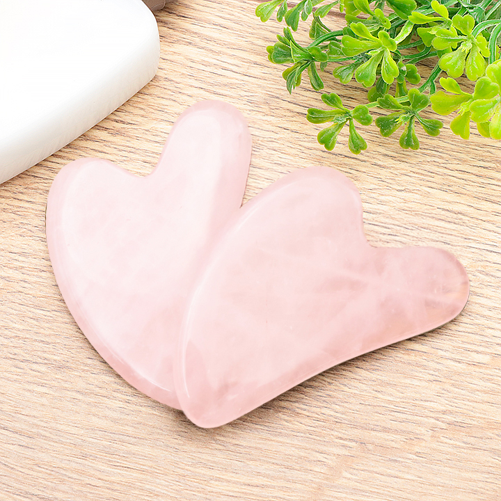 Gua sha corazón 80mm cuarzo rosa Brasil A (set 3 piezas)