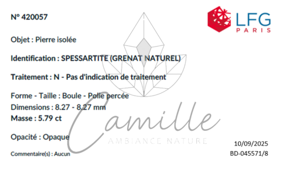 Cuando recibimos un nuevo lote de minerales, seleccionamos una o varias muestras de todo el lote y las enviamos a LGF para su análisis. Hemos adoptado este método de trabajo para garantizar la máxima seguridad en cuanto a la calidad y autenticidad de nuestras piedras. Nos gustaría señalar que, dado el coste de los análisis, es obviamente imposible hacer tasar cada piedra o perla vendida. Sin embargo, este método de tasación nos permite realizar comprobaciones periódicas, lo que favorece la sinceridad de nuestros proveedores y la confianza de nuestros clientes.